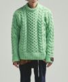 ブランドとしては珍しいオーバーサイズのクルーネックニット。フィッシャーマンニットの温かみのある雰囲気は残しつつ、ブランドらしいアプローチで都会的なアイテムにアップデート。糸の状態で起毛した、膨らみのある太番手ポリエステル糸を使用し、発色が良く、軽い着心地が特徴。形状保持力に優れた、耐久性のある素材。