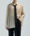 シーズンテーマである"wink"が冠されたシアーシャツ。特徴的なドット柄とさりげなく佇むサテンのストライプ。絶妙なコントラストが奥行きを加え、ブランドらしい1枚に。生地はシボが特徴的な楊柳組織とサテン切り替えの軽やかなものを使用し、動きのあるシャツに仕上げた。引き続き、襟元のボタンで着脱・位置調整が可能なネクタイも付属。