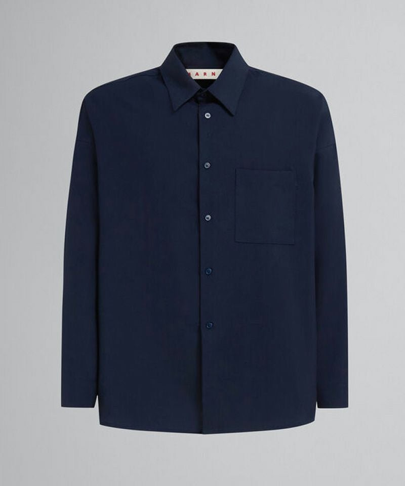 トロピカルウール製の長袖シャツ。ボクシーフィット、ボタン付きカフ。胸ポケット。バックヨークにキャンバス製のマルニラベル。