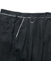 先染めのリネン糸を用いたツイル生地に洗い加工や起毛加工を施しているUEオリジナルファブリックの2タックワイドパンツ。