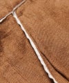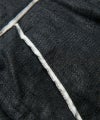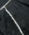 セットアップ仕様のジャケット同様、 随所にカットオフしたシーチングを施してアンフィニッシュなムードを演出しています。