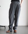 工場などで使用される不織布のような独特のシボ感と乾いた質感を表現。ウエストに平ゴムとドローストリングを配すことでリラックスムードを叶え、ウエストのタックから緩やかなテーパードシルエットにすることで、滑らかなフィッティングがカジュアルになりすぎない上品さを兼ね備えた1着。