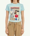 ヴィンテージ感のある「電話広告」をグラフィックプリントとして再解釈し、質感のあるクリスタルストラスの装飾を重ねています。