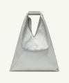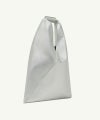折り紙から着想を得た三角形の折り目が、シンプルなトートバッグを彫刻的なフォルムへと変貌させています。