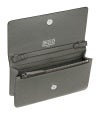 エンボス加工が施されたグレイニーレザー製のスリーフォールドウォレットです。