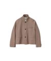 肩に程よく構築性を持たせたクラシカルなシルエットは、やや大きめのショルダーとショートレングス、コンパクトな身幅のバランスがマスキュリンなムードを添え、着るたびに凛とした印象を放ちます。