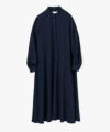 肩はコンパクトでスッキリとしたシルエットの柔らかく落ち感のあるダブルサテンを使用したバンドカラードレス。