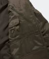 ミリタリーのディテールでもある前振りの袖がデザインアクセント、アクションプリーツを加えた。